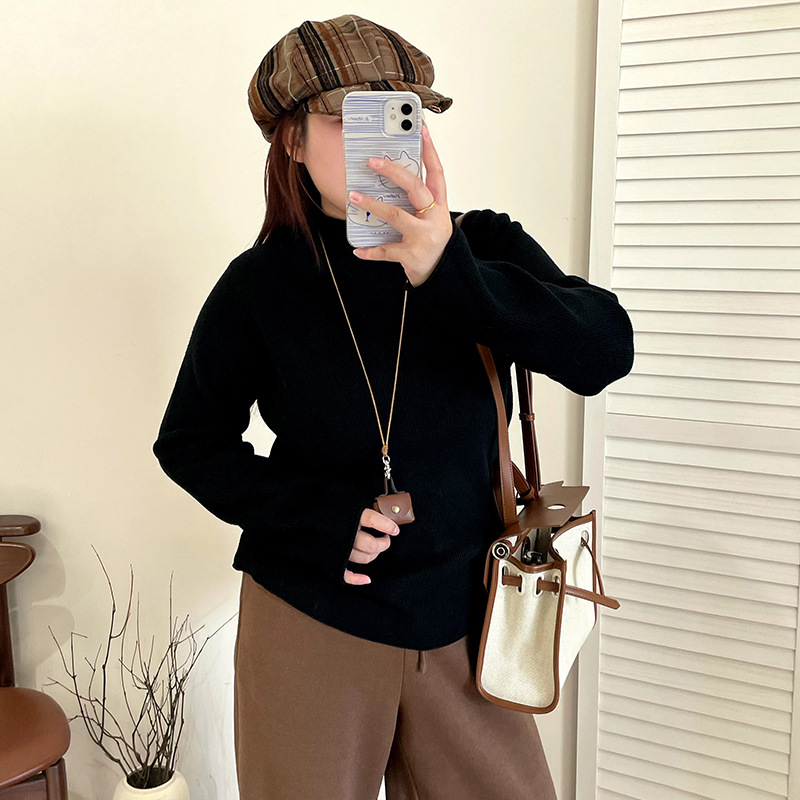大きいサイズのレディースセーター、ハーフタートルネック、長袖、インナーウェア、2025年冬、ぽっちゃりさん向け、mmサイズ、ニットセーター、22687