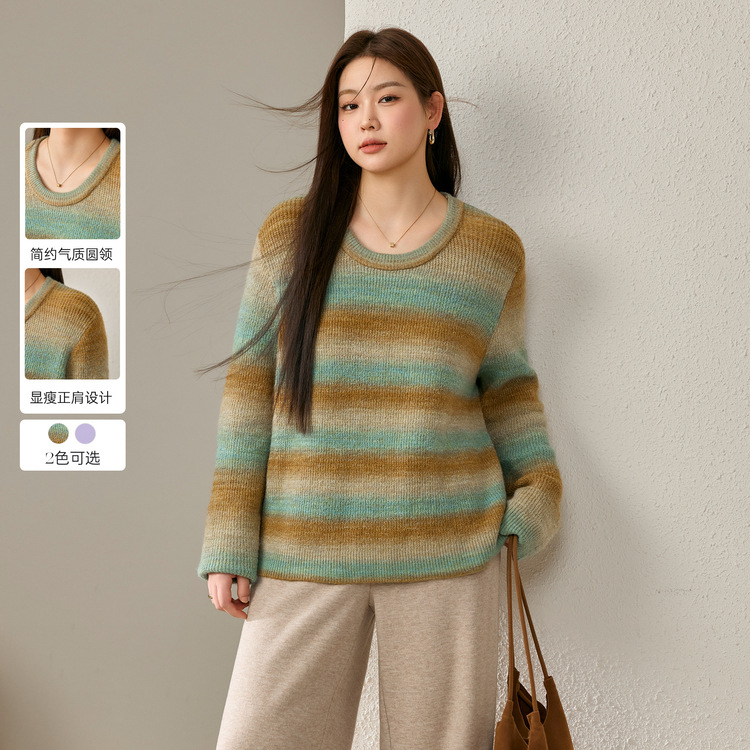 【グラデーションストライプ上着】繊維莉秀大サイズ女装アメリカレトロニット太ったmm2024冬服新作