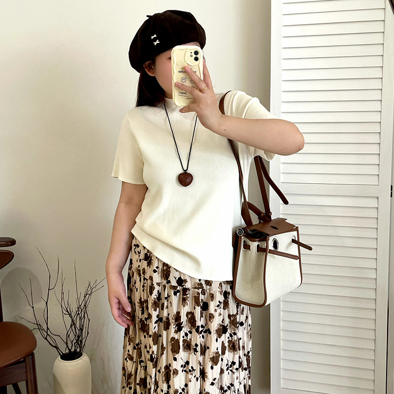 大きいサイズのレディース服、万能なハーフタートルネック、五分袖トップス、2025年秋、ぽっちゃりさん向け、外でも内でも着られるニットウェア 22872