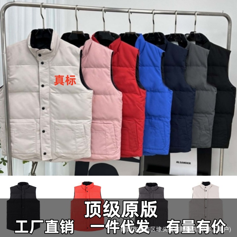 ガチョウのダウンジャケットのベストクラシック2024秋冬の男女カップルの短いベストの肩のコートの国境を越えた対外貿易