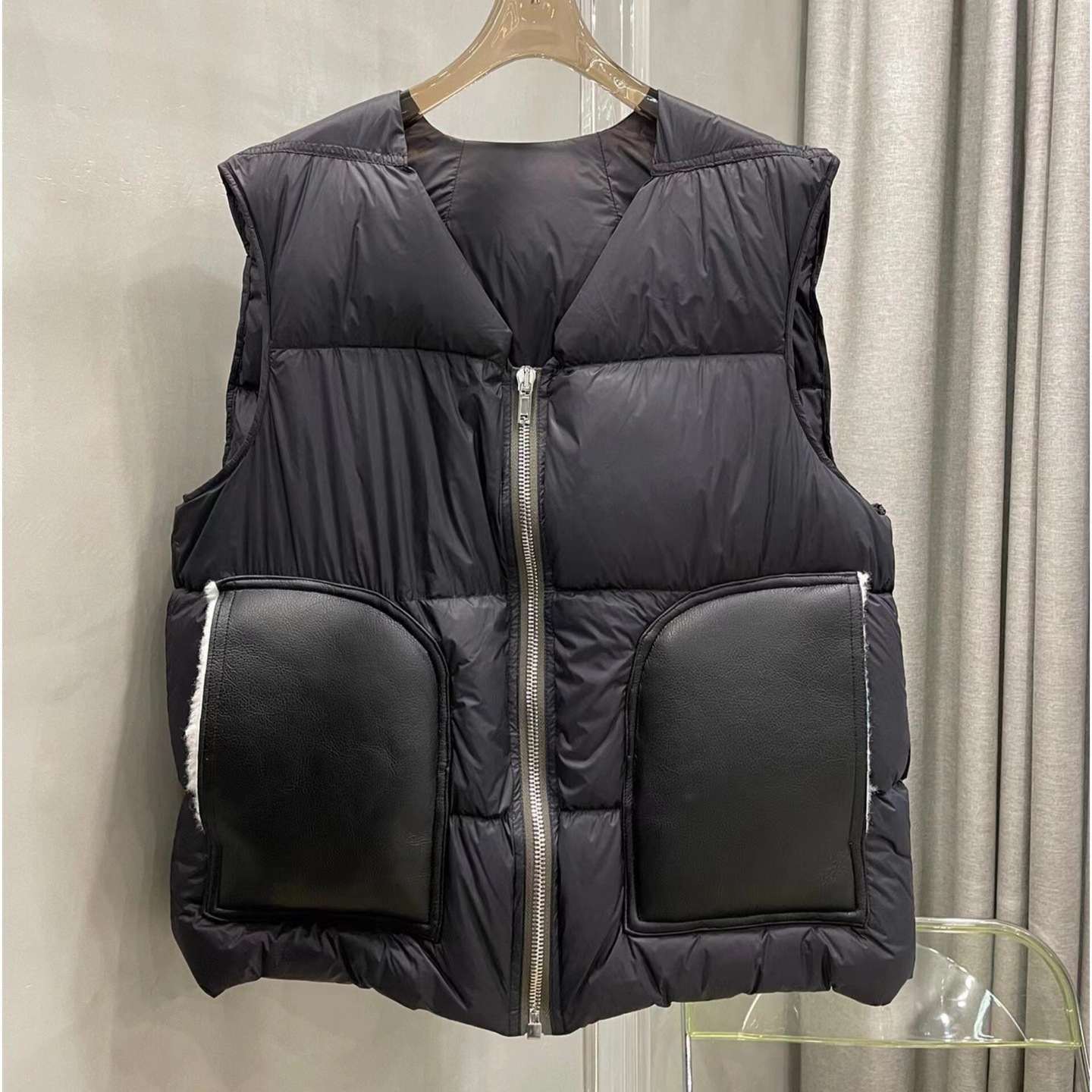 蔡徐坤Ric * kow革はポケットダウン馬甲女暗黒風超軽量保温白ガチョウのベストをつなぎ合わせた