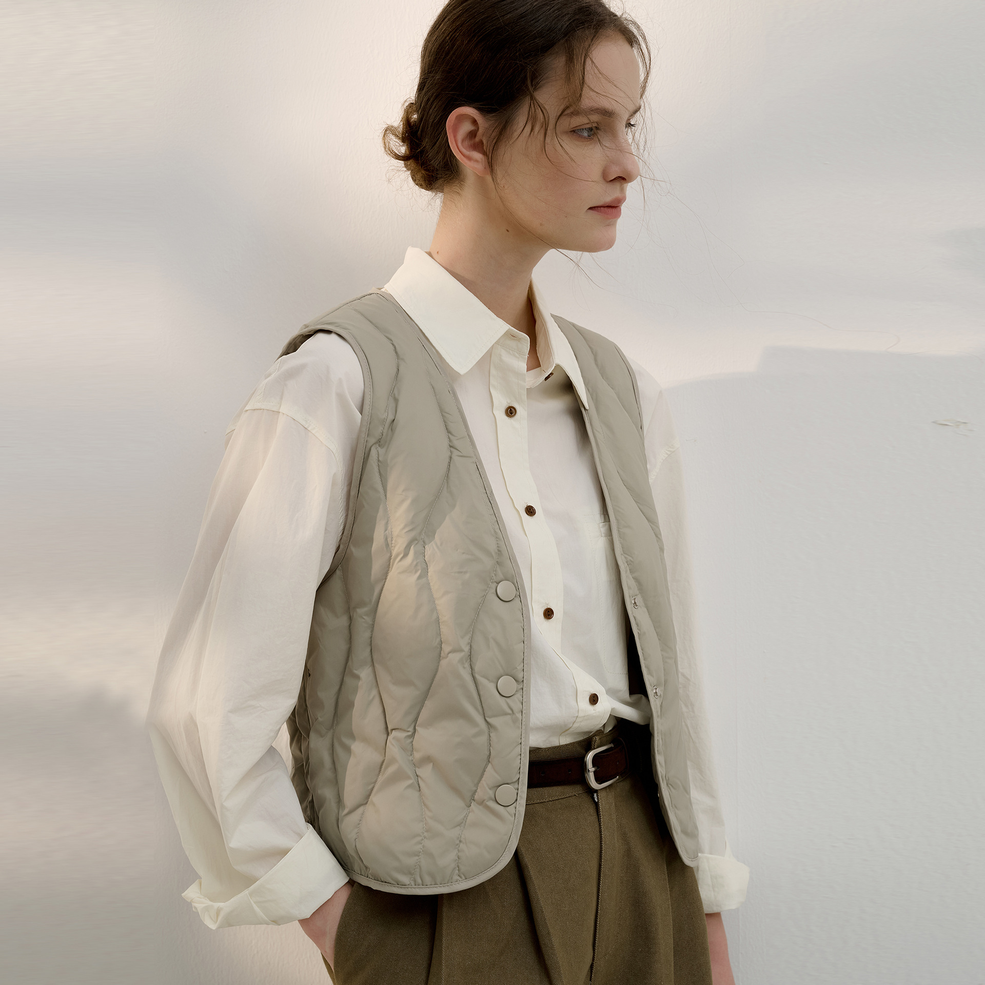 品質も価格も特別です。90% 白鴨絨毛丸襟vネックダウンジャケット馬甲ベストF101616