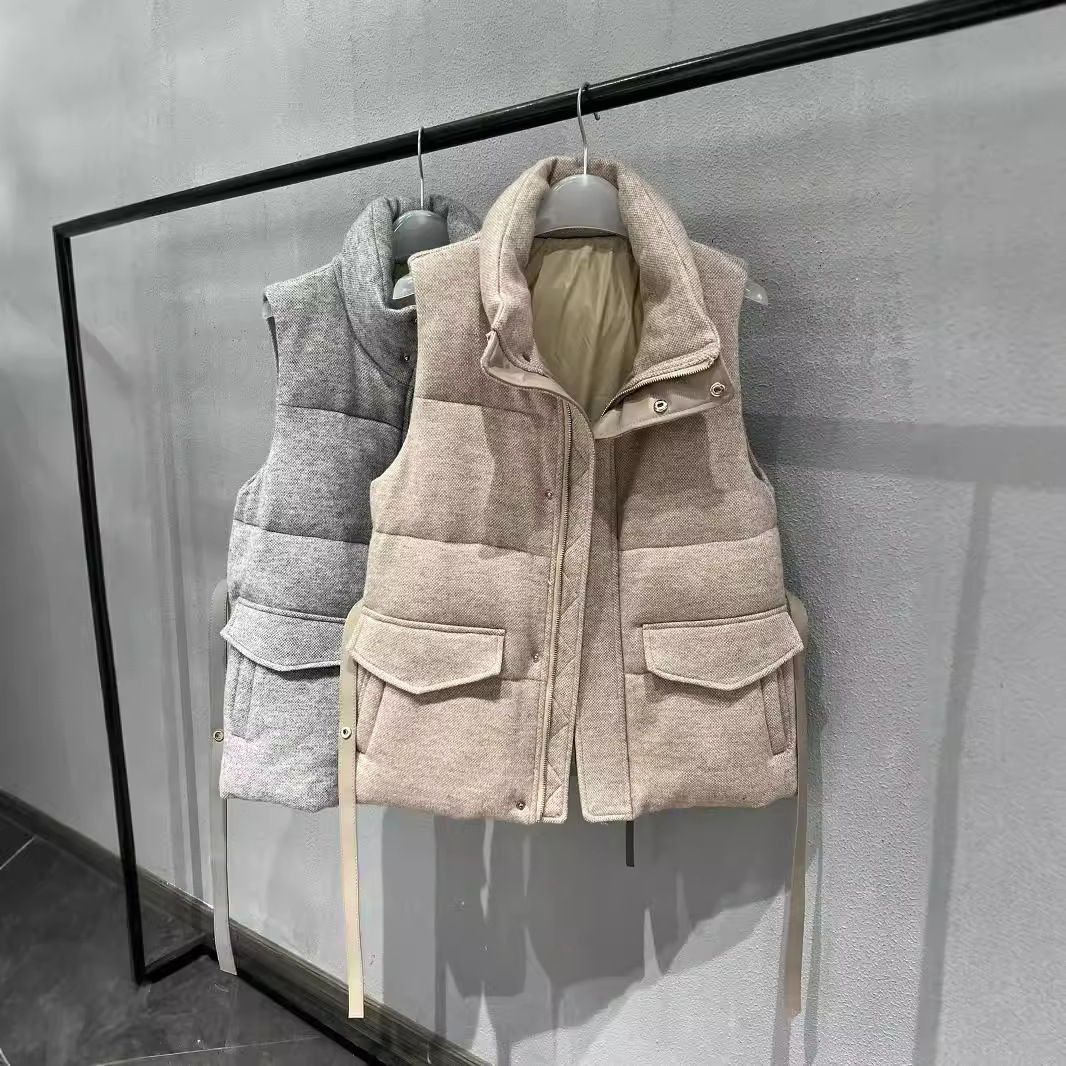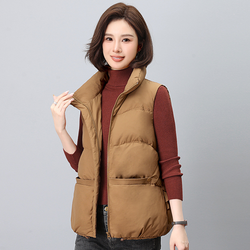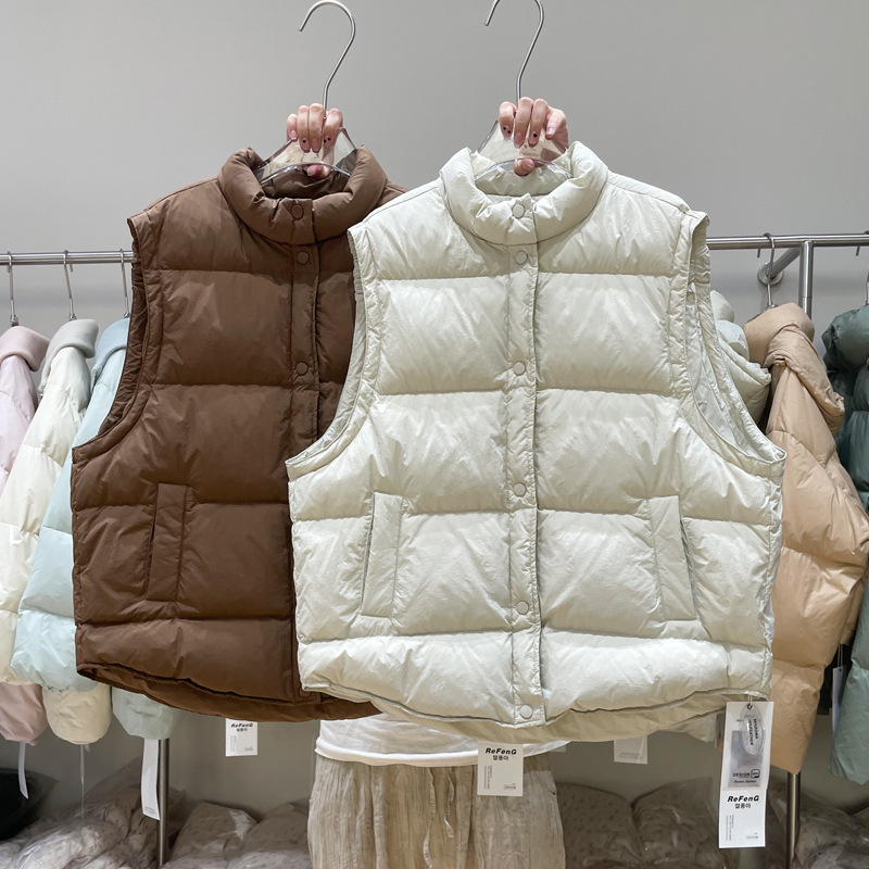 リノ韓国版シンプルスタンドカラー斜め襟ダウンベストジャケット女性用2025冬新作厚手アウターダウンジャケット