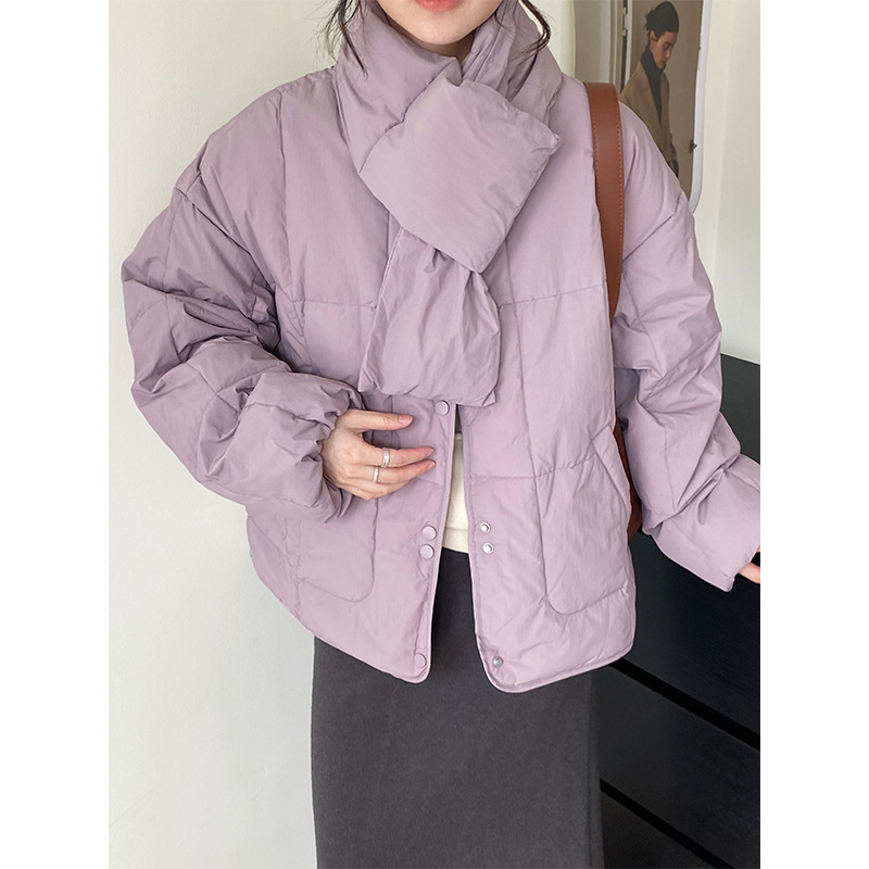 じゃあ、芋泥包韓系紫帯マフラー付きダウンジャケット女性冬カジュアル保温パン服コート2296