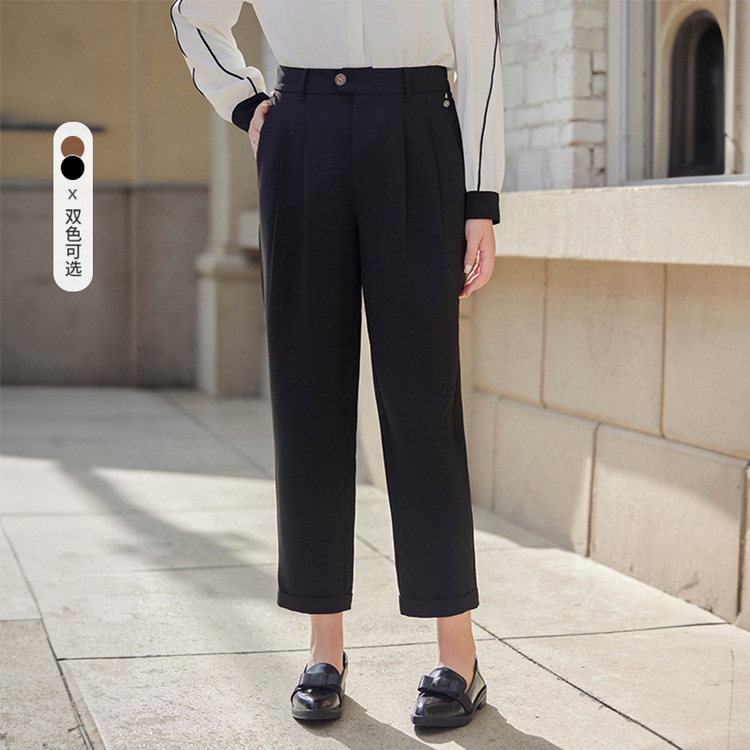 繊莉秀2023秋装の新型の大きいサイズの婦人服の太っているmm韓国版の高い腰の垂れ下がっている感じのダイコンのズボンの通勤するスーツのズボン