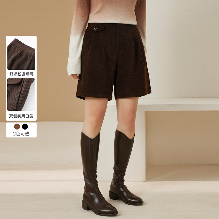 繊莉秀の大きいサイズの婦人服の流行の気質の皮のショートパンツは腰を緩めてやせていて肉のズボンの太っているmm2024秋の新型を覆います。