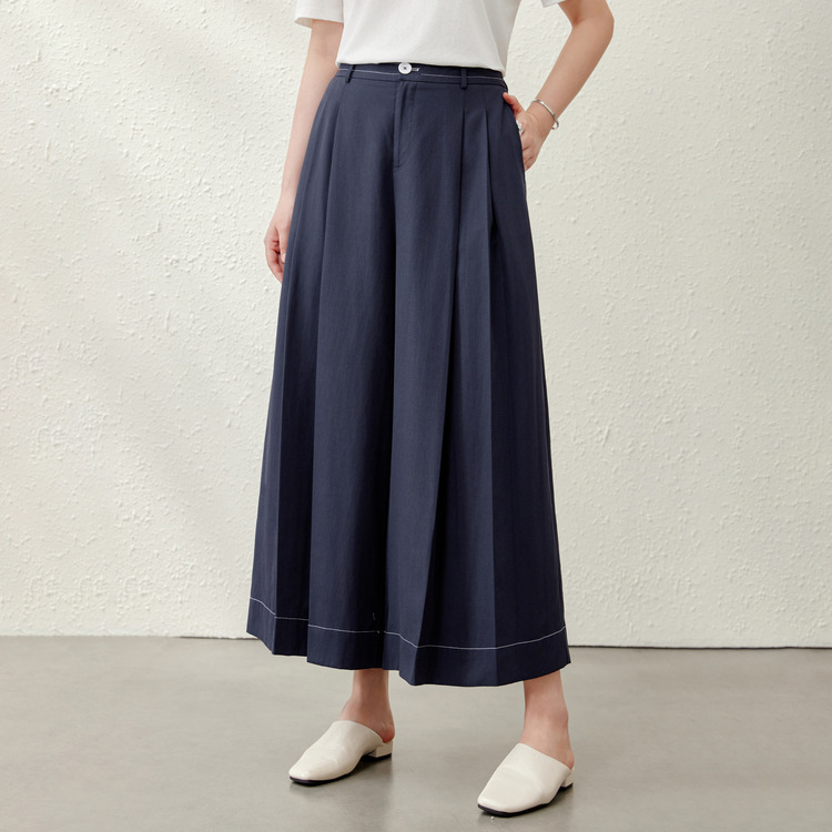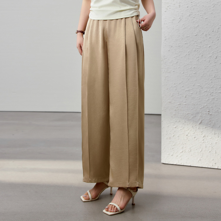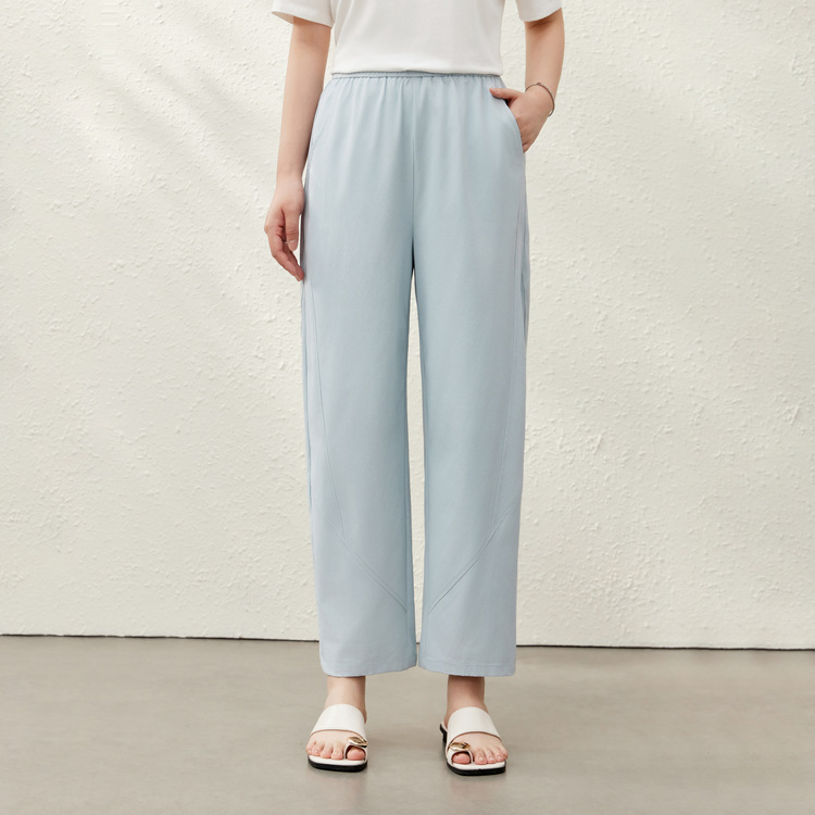 ゆったりとした腰の高い綿の9分のワイドパンツの女性の韓国版の百合はやせているストレートのカジュアルなズボンを現します。