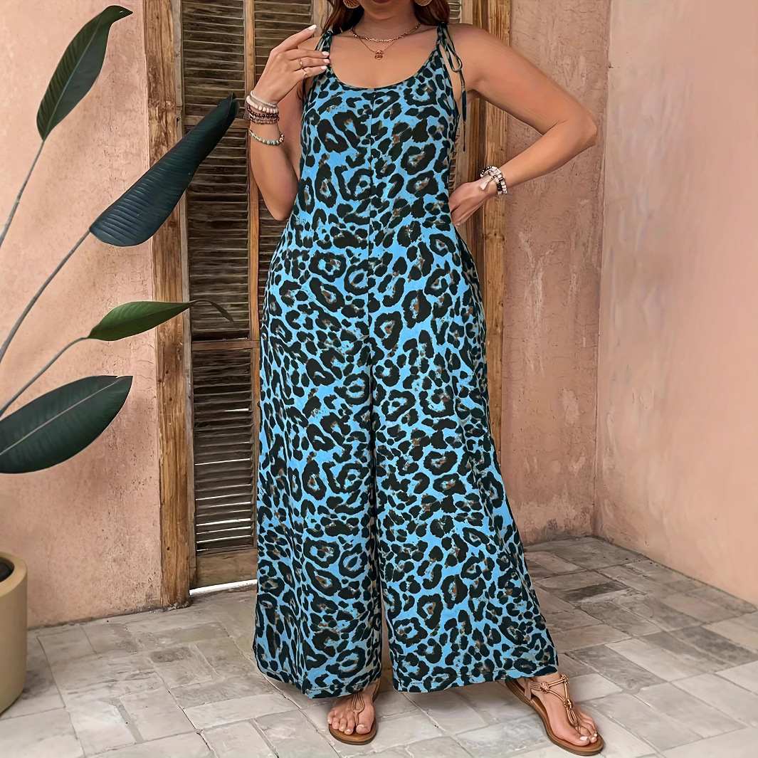 25年欧美亚马逊夏季新款大码女士气质优雅豹纹性感印花无袖连衣裙