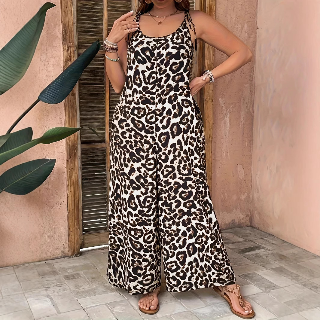 ヨーロッパとアメリカのクロスボーダージャンプスーツワイドレッグプラスサイズレディース夏半袖キュロットヒョウ柄カジュアルレディースハイエンドパンツ