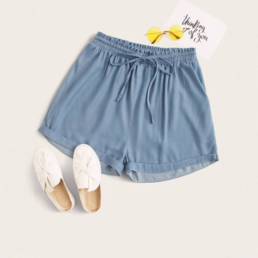 2025年 欧米越境ECサイトで人気の大きいサイズレディースショートパンツ、実物写真撮影、ドローコードウエスト、着痩せ効果あり