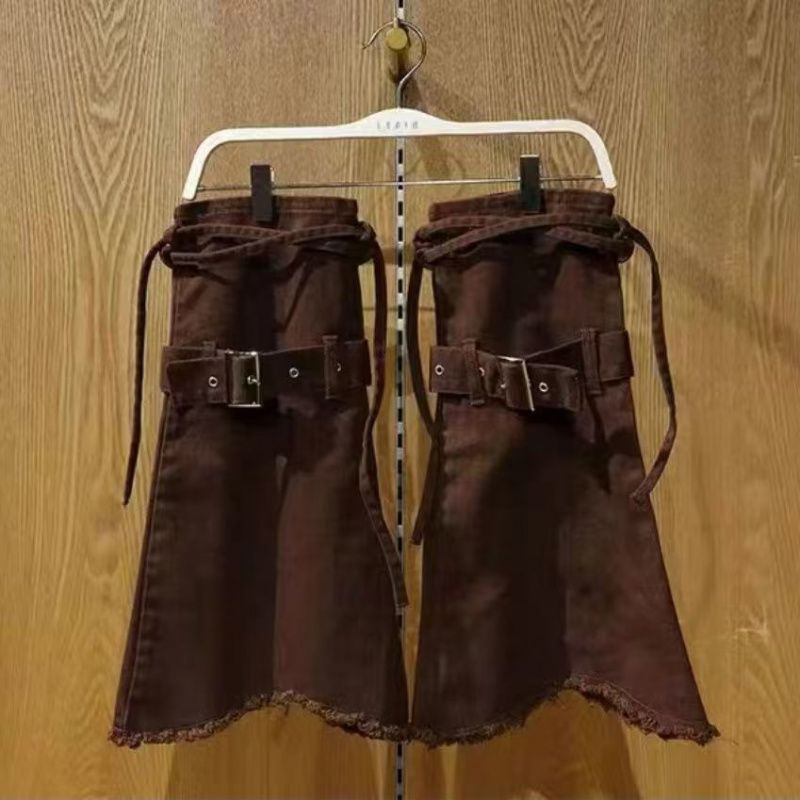 クロスボーダー痩身ソリッドカラーサブカルチャーパンク調節可能なウォッシュデニムソックスストラップストリートフレアレッグカバートレンド