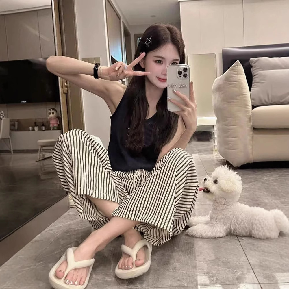 Caiduobao プラスサイズの女性のファット mm2025 夏の新ハイウエストコントラストカラーラインストレートカジュアルパンツ EXK5192
