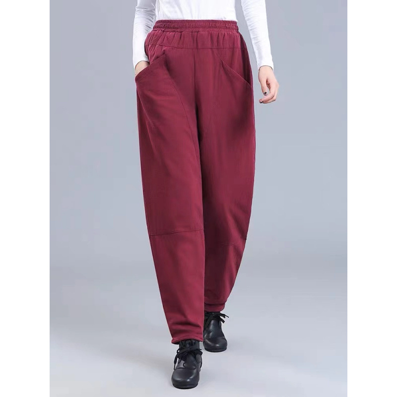 公式写真 2023 冬の大きいサイズの女性の新しい柔らかく軽い純綿弾性ウエスト暖かいカジュアル綿パンツ