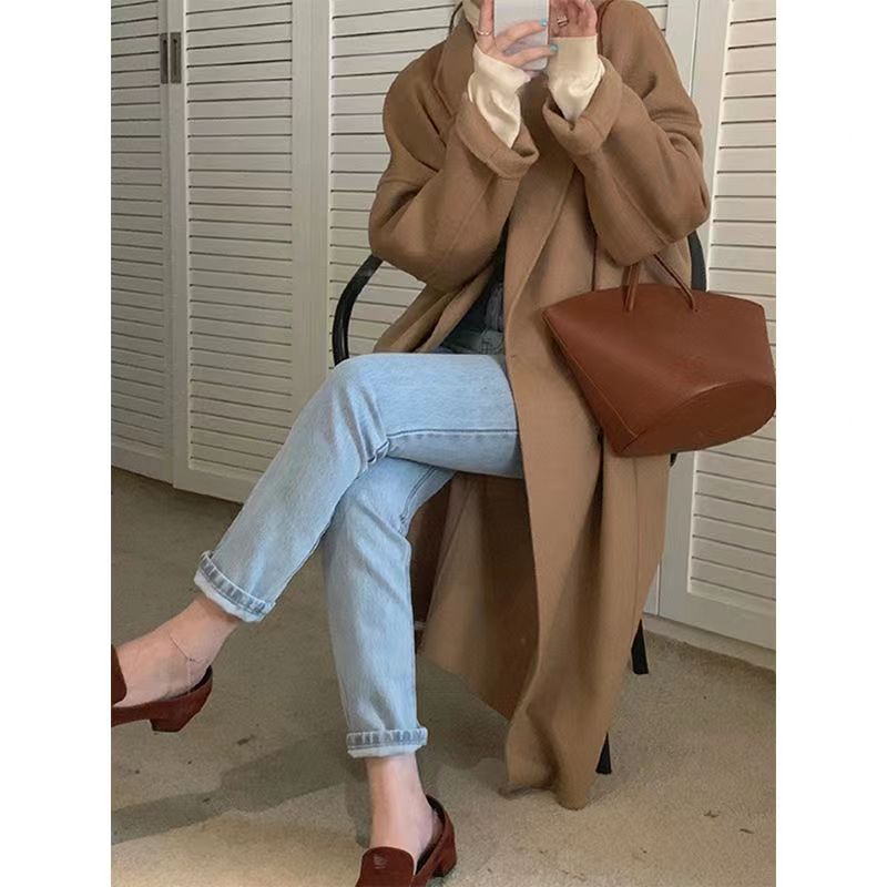 学生の毛尼のコートの女性の中で長いタイプの2024冬の新型の韓国版はゆったりしていてやせています。