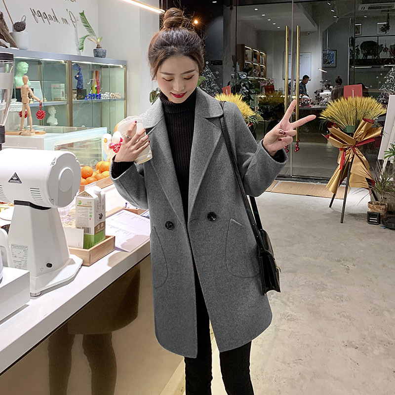 模造ウールコート女性秋冬 2025 ミドル丈肥厚ルーズウインドブレーカーブレザー韓国スタイル和風痩身