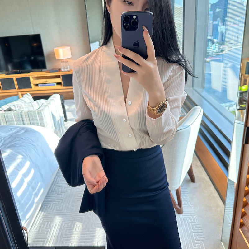 包郵便CS170大サイズ女装職業面接作業服に太ったMM長袖縞シフォンシャツの上着を着る