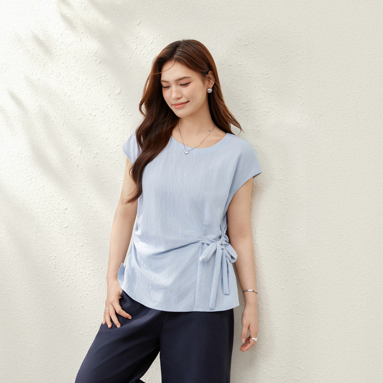 【リヨセル知的気質レースアップウエストシャツ】Xianlixiuプラスサイズ婦人服ファットmm2025夏の新しいスタイル