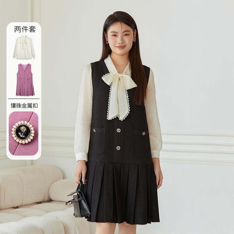 繊莉秀の大きいサイズの女装のフランスの気質はやせている富家の娘の2つのセットの太っている妹の2024春の服装の新型を現します。