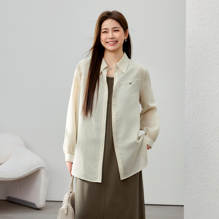 【知的軽熟風ファッション気質米白シャツ】繊莉秀大サイズ女装太ったmm2025春新作