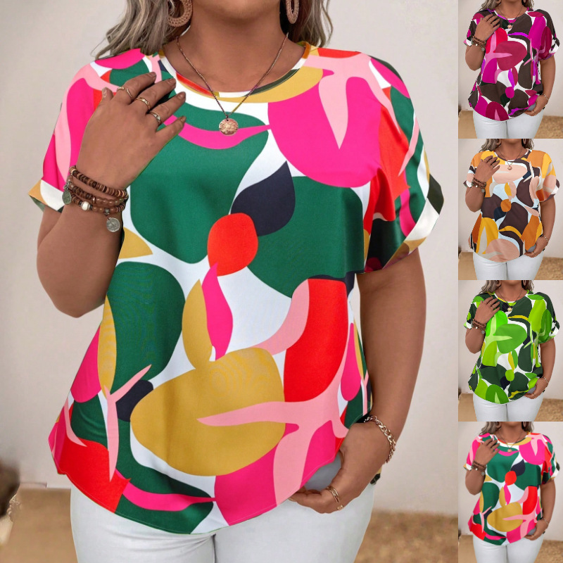 欧米の大きいサイズの婦人服の2024夏の新型のアマゾンの速売の丸首の半袖のプリントのキノコのボタンのシャツ