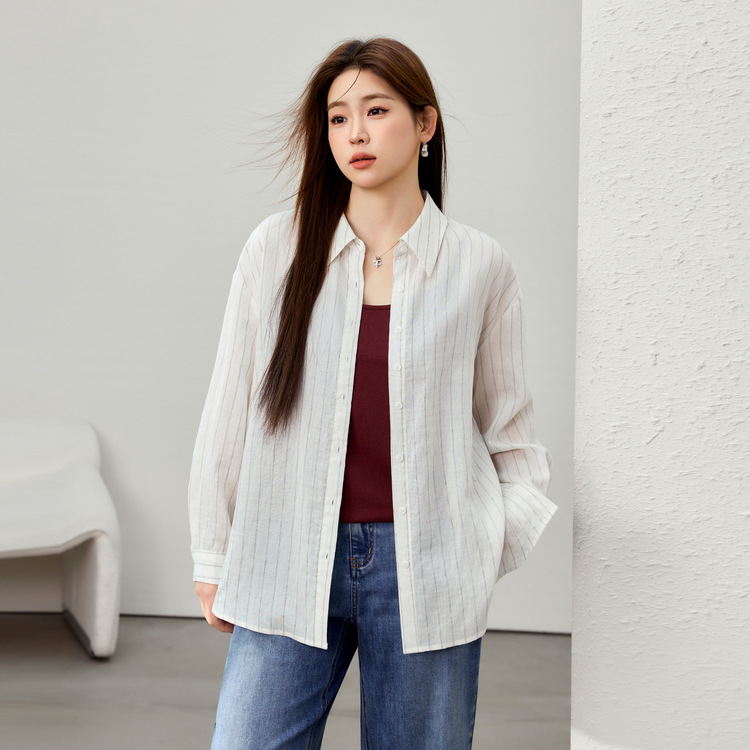 2893刺繍ラミー麻シャツ女性文芸復古綿麻上着ゆるいカジュアルシャツ2024秋新作