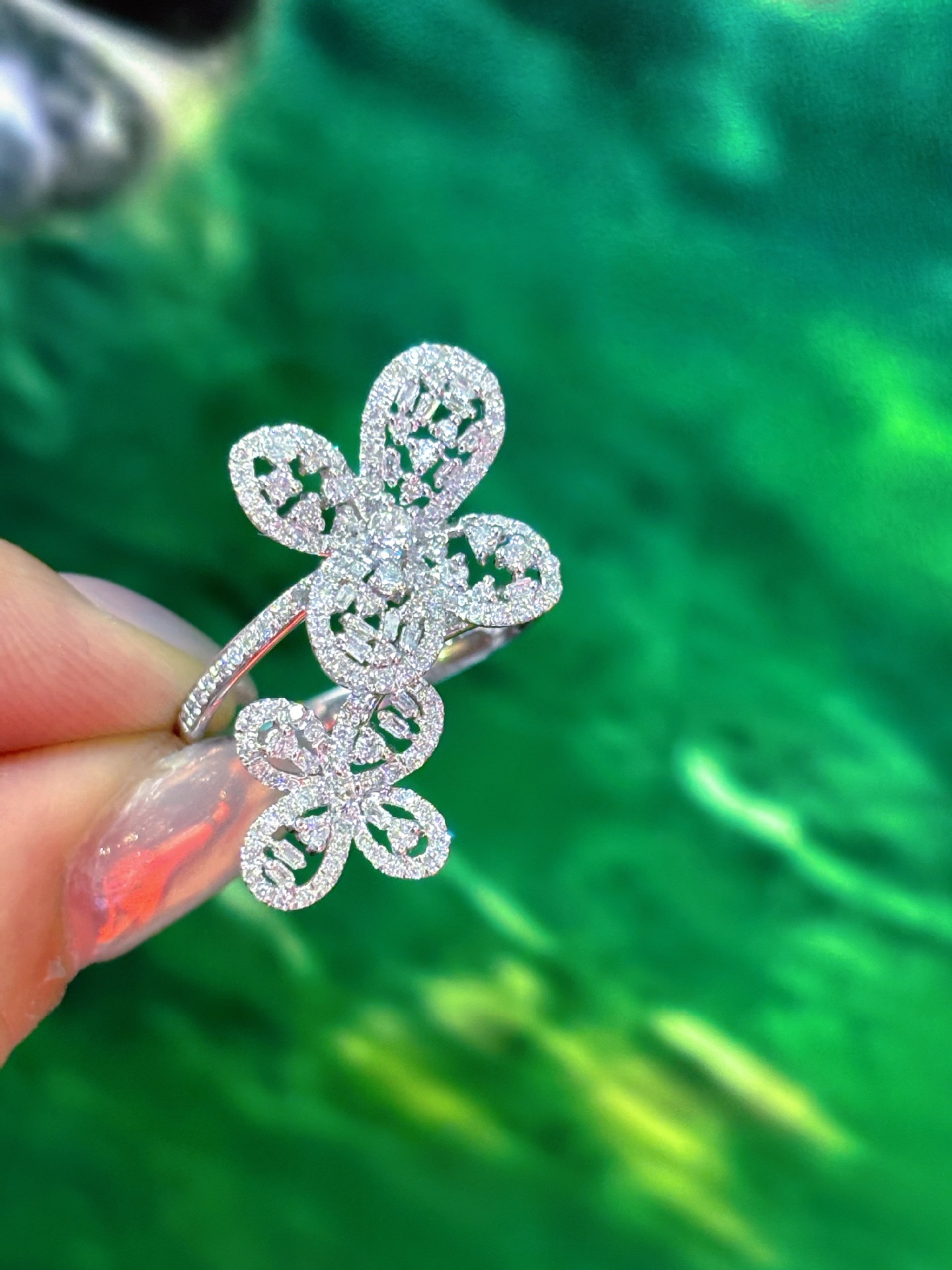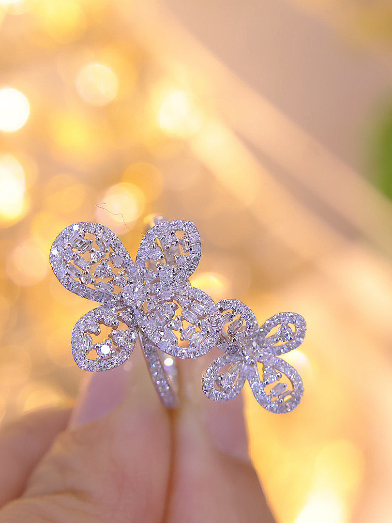 プラチナ高級ジュエリー高級 PT プラチナフルダイヤモンド立体フラワーリングジュエリー Douyin ジュエリー卸売ドロップシッピング