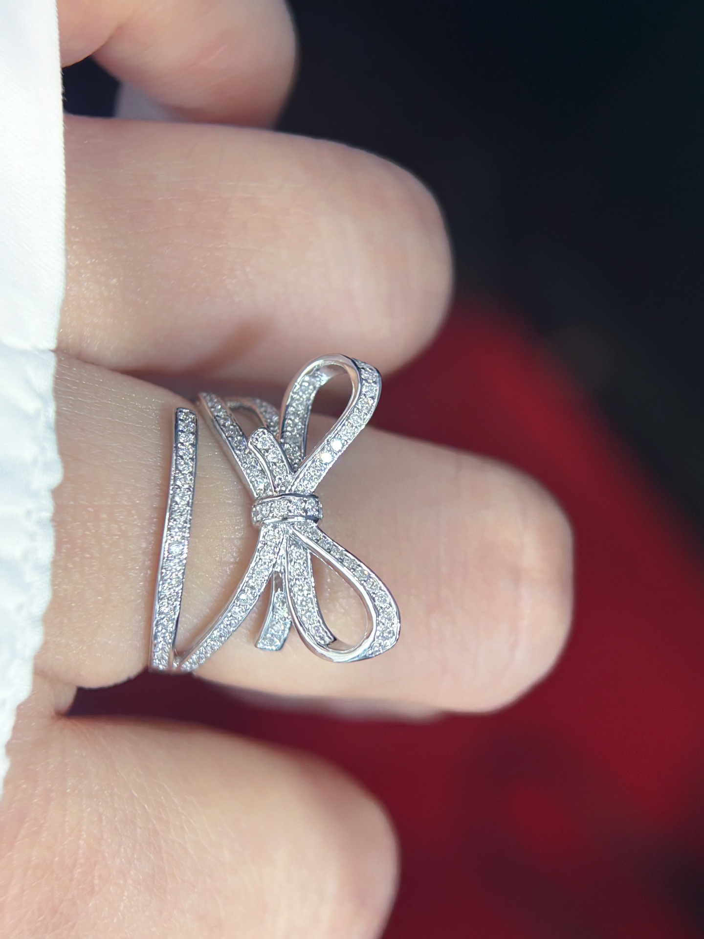プラチナ高級ジュエリー高級 PT プラチナ象嵌 50 ポイントリボンリボンリングジュエリー Tik Tok 卸売ドロップシッピング
