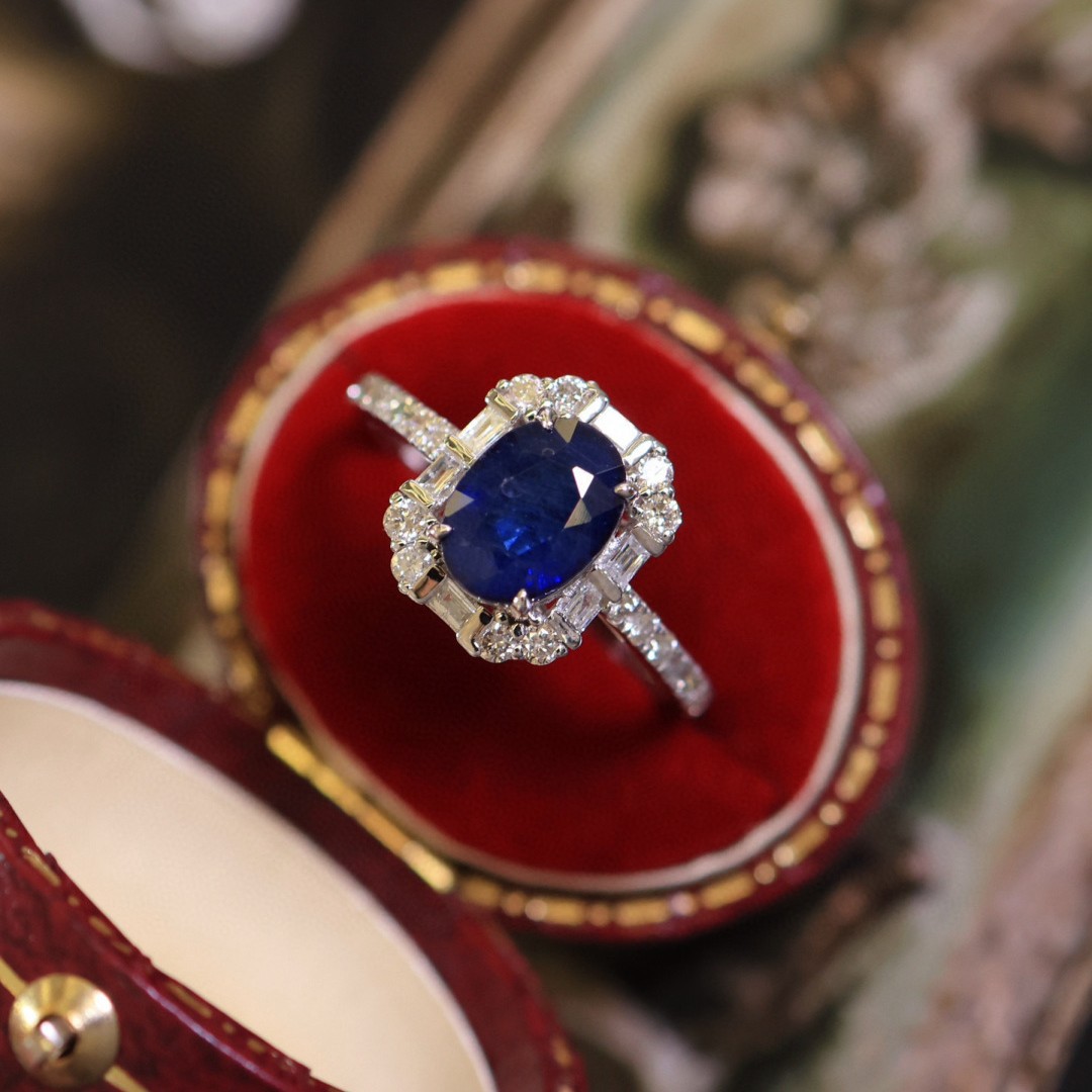 Pt900 プラチナ カラーファインジュエリー ライトラグジュアリーリング 天然オーバルサファイア 1.6ct ダイヤモンド 0.45c