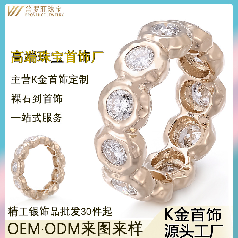 ヨーロッパとアメリカのファッショナブルな単列フルダイヤモンド育成ダイヤモンドリング高級 PT950 ダイヤモンドリング女性のパーソナライズされたラウンドリングクロスボーダー限定