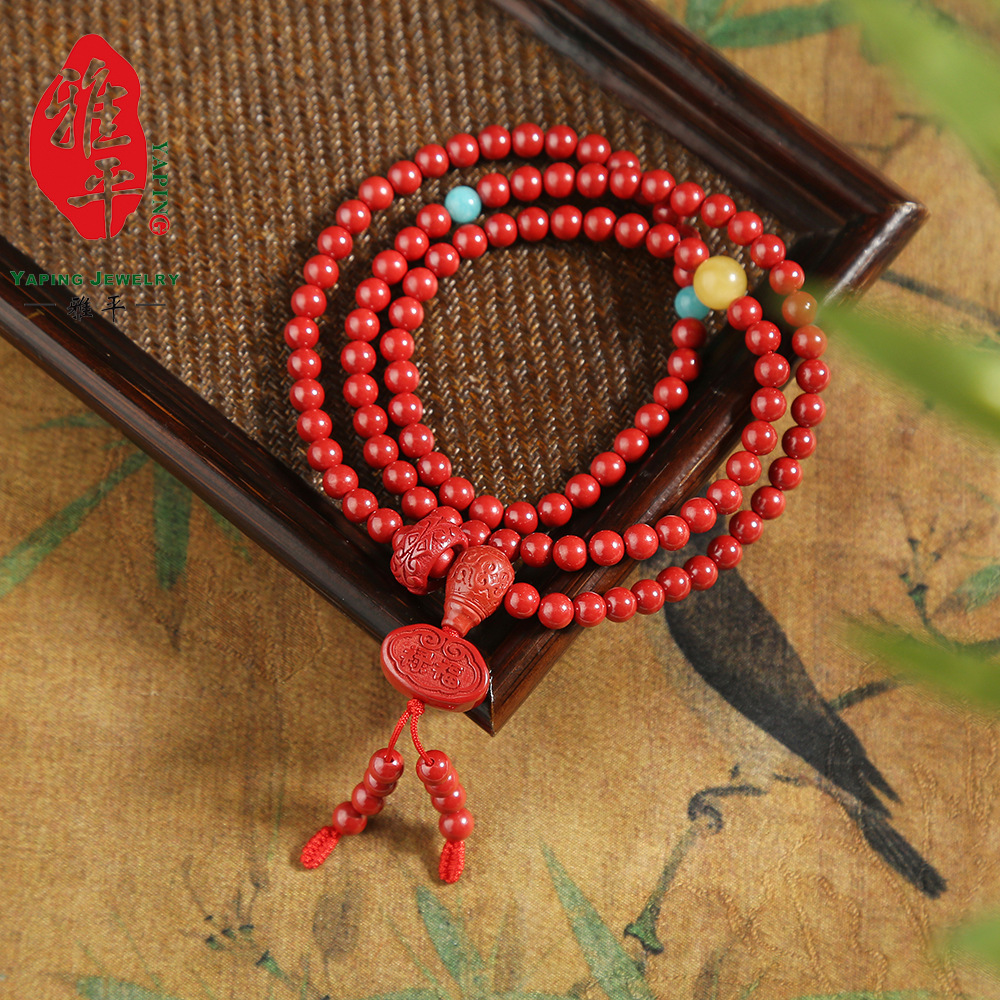 帝王朱砂畳戴手串多環デザイン感天河石蜜ろう手串福禄祝福プレゼント数珠飾り