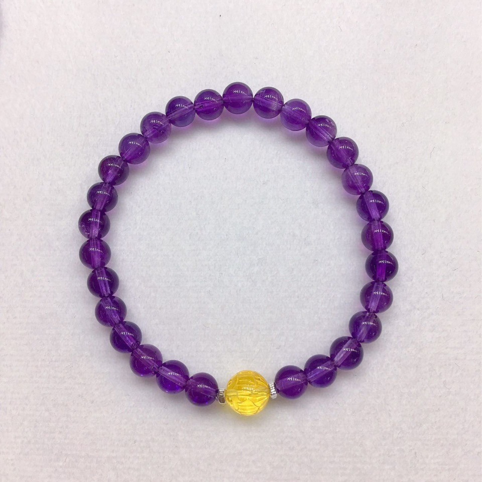6ミリ天然紫水晶単輪ブレスレット結晶透過と天然ミツロウ蓮珠s925