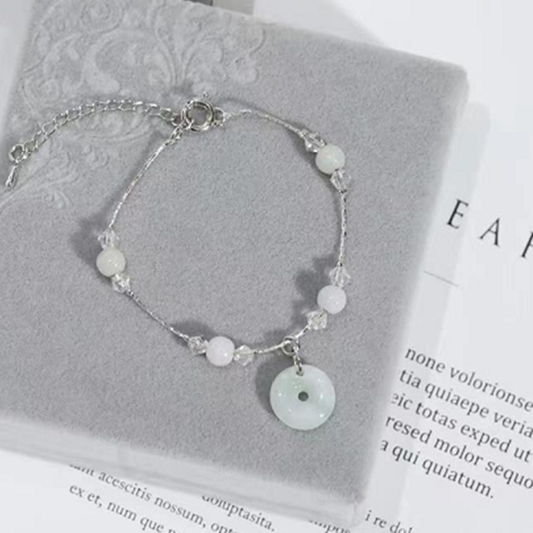 翡翠ブレスレット 天然ライトグリーン翡翠ブレスレット 氷翡翠カラー ガールママモデル 証明書付き