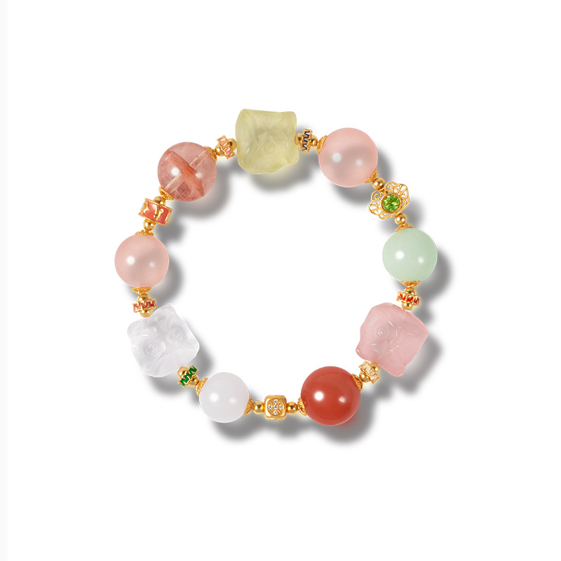 ふしぎ南紅瑪瑙青糖心瑪瑙ブレスレット手串朱砂苺晶中国風新中国式起爆女