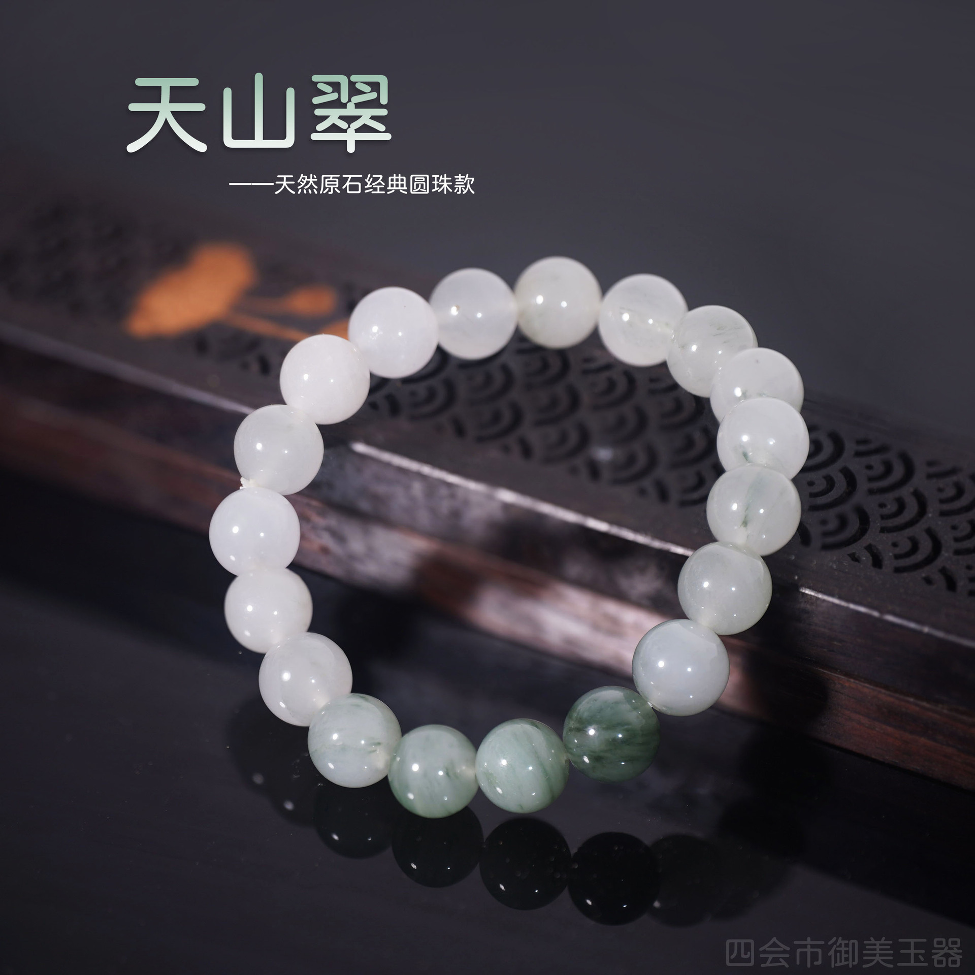 天山翠玉散珠ブレスレット男女同金14mm白玉円珠漂花手串卸売り生中継ソース