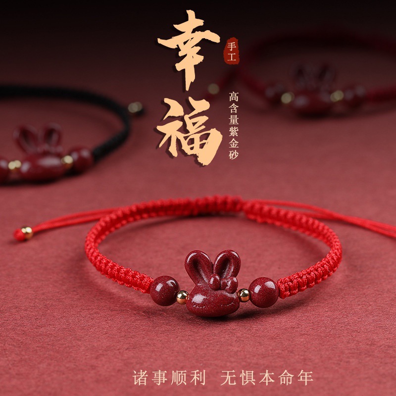 朱砂玉兎手縄本命年秋冬新作紅縄ins手編み手串から彼女の親友にプレゼントします。