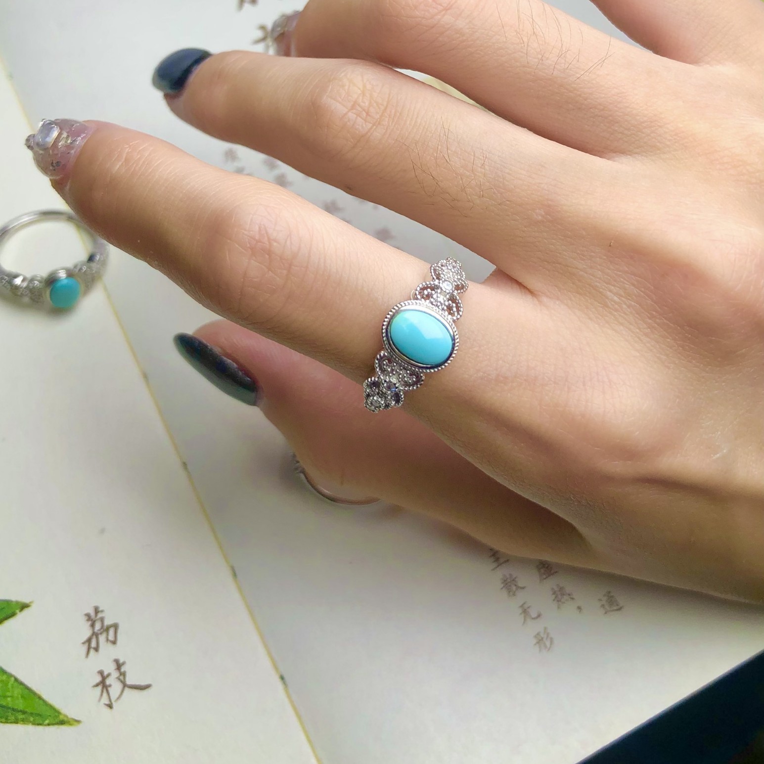 S925シルバー純銀に24K本金メッキを施した天然原石ターコイズリング(女性用、証明書付き)