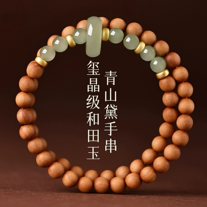 天然和田玉手串女手玉インド老山檀ブレスレット多輪木造仏珠復古国風小衆