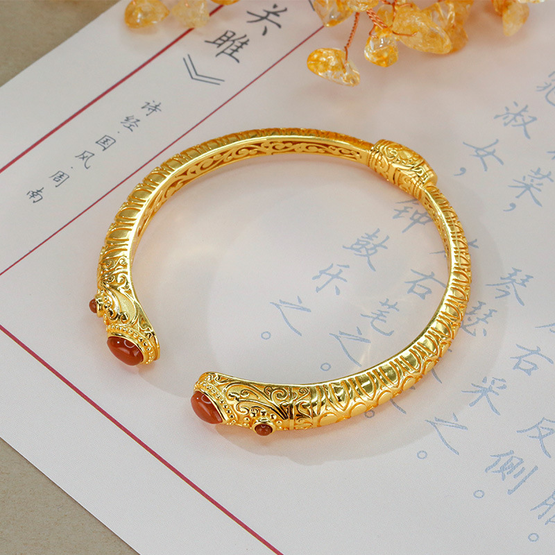 S925銀金メッキは南紅瑪瑙ブレスレット国潮龍鳳古法手環復古精致大気プレゼントをはめ込んでいます。
