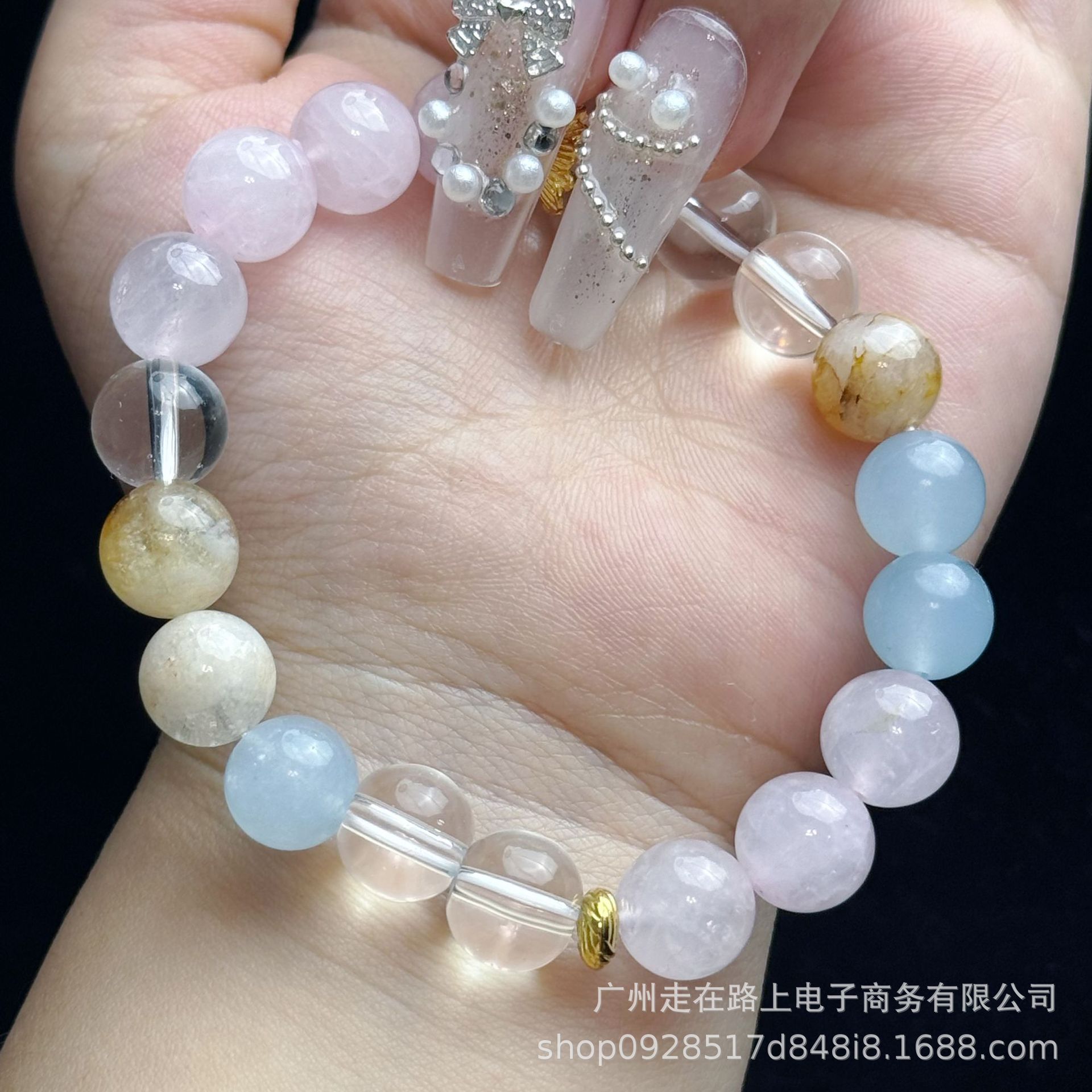 新商品の小清新アンドロメダ風ドーパミン天然黄塔晶粉晶藍玉髄原石ブレスレット女性寺院同金