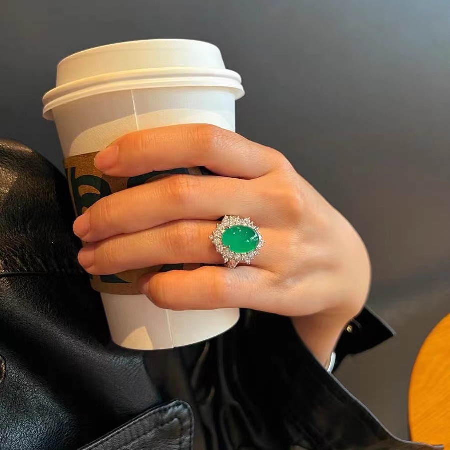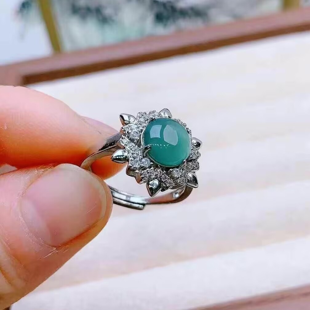 翡翠色の天然緑玉髄指輪ハトの卵の女性リングは、母親に目上の人に誕生日プレゼントを贈るのが実用的である