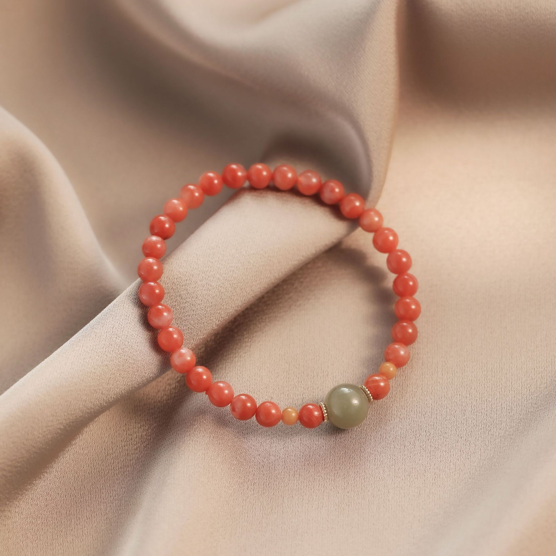 ブレスレットの女性の天然の南の赤い瑪瑙の満色の肉の柿の赤と田の玉のS925の銀のシンプルな大衆のinsの装飾品