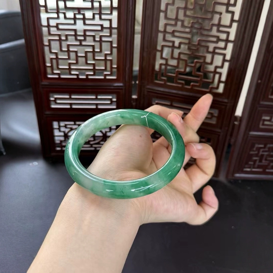 メーカー卸売ハイアイスクォーツ岩翡翠白氷フローティンググリーンブレスレットレディースセミランドスケープグリーンフラットストリップ翡翠ブレスレット