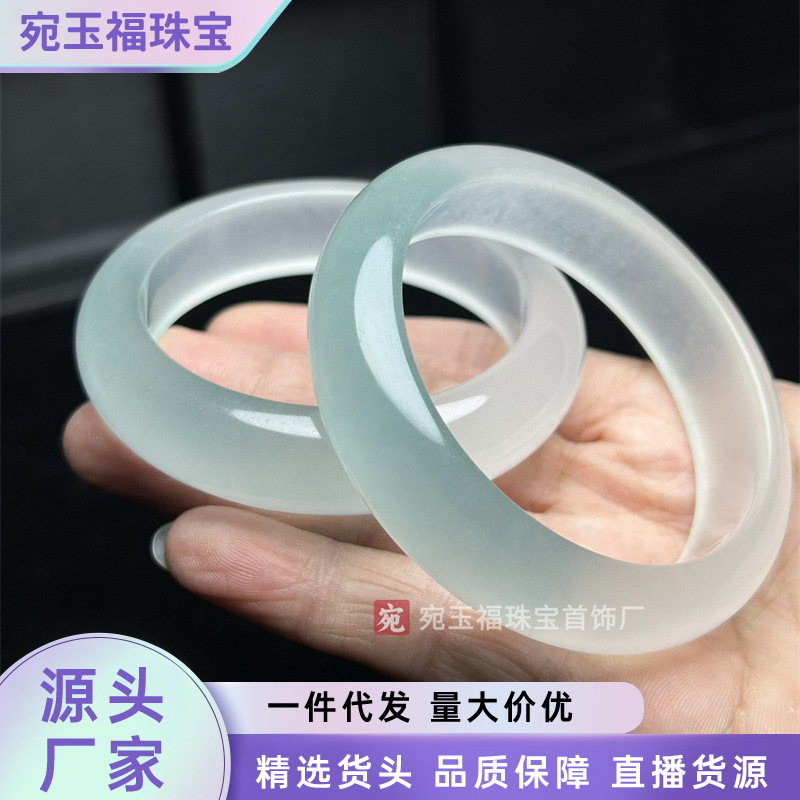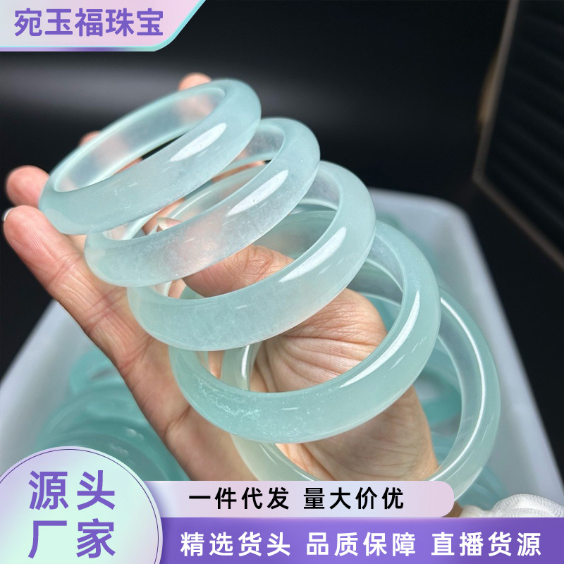 メーカー卸売ハイアイスクォーツ岩翡翠白月光フラットバングル女性のアイスライトブルーウォーターパープルワイドバングル