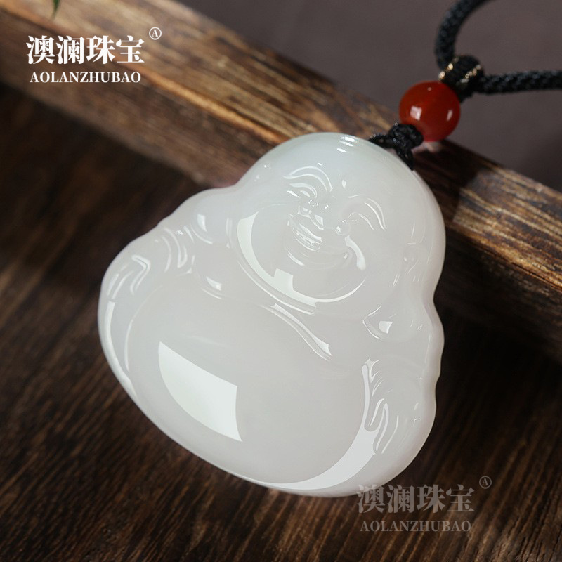 アフガニスタン翡翠特大翡翠ペンダント女性ネックレス弥勒仏大腹仏笑い仏翡翠ペンダント