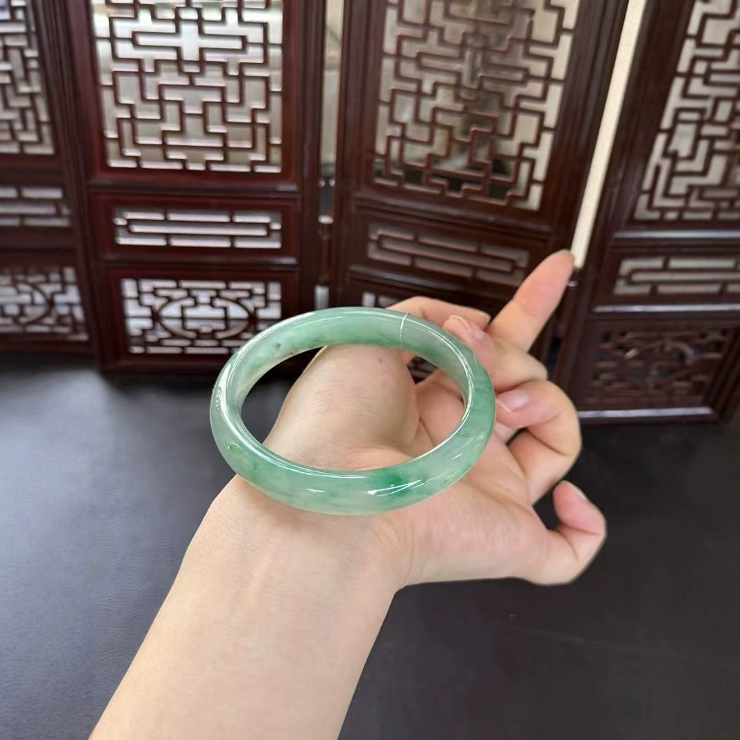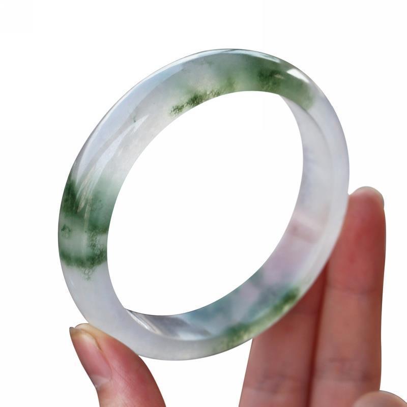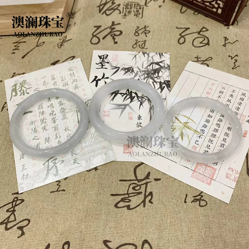 メーカー卸売水墨画フラットバーブレスレットアイスグレーホワイトムーンライト薄いラウンドバー翡翠ブレスレット女性の翡翠美容ブレスレット