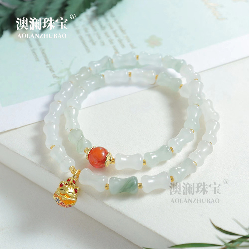 天然金翡翠桃の花入り翡翠ブレスレット、女の子スタイルの気質翡翠ブレスレット、ニッチビューティー、多用途の美白ブレスレット