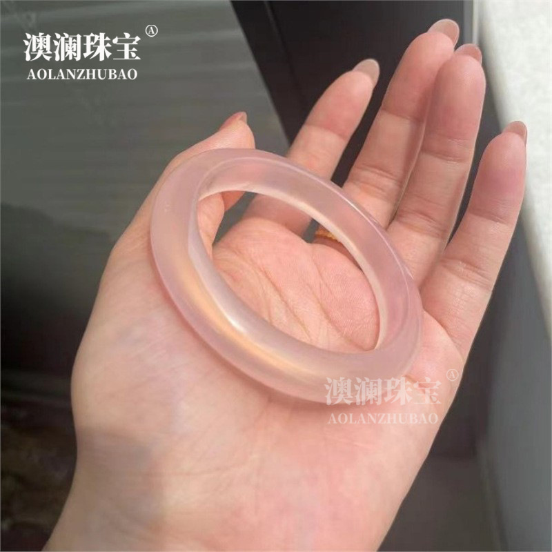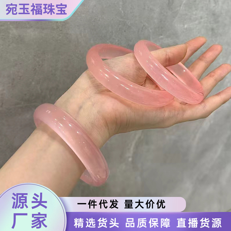 メーカー卸売ハイアイスクォーツ岩翡翠桜ピンクフラットバーブレスレットレディースアイスライトピンク薄いラウンドバー翡翠ブレスレット