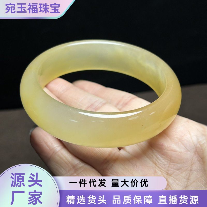 メーカー卸売ハイアイスクォーツ岩翡翠ハニーウォーターイエローフラットバーブレスレットレディースイエロードラゴンヒスイワイドバーブレスレット