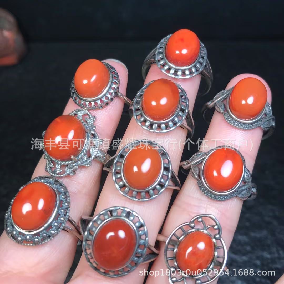 メーカー卸売ナチュラルサザンレッドリング s925 シルバー象嵌レトロスタイル diy ジュエリーライブポート
