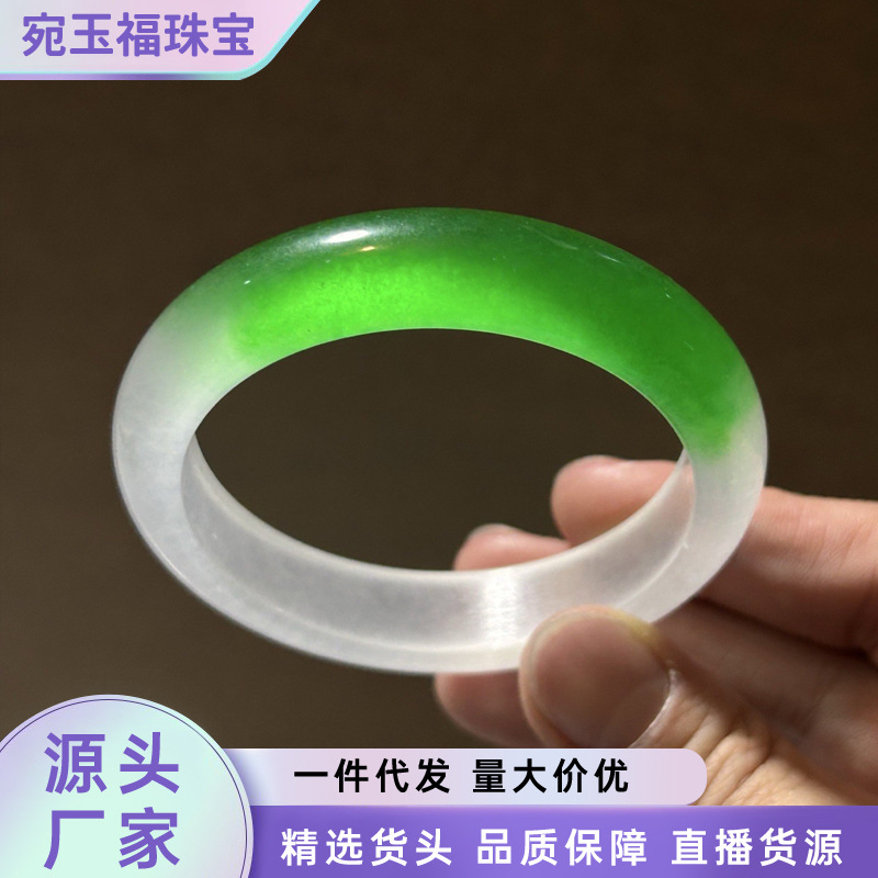 メーカー卸売ハイアイスクォーツ岩翡翠ライトカラーフローティングフラワーフラットバーブレスレットレディースホワイトヒスイフローティンググリーンワイドバーブレスレット